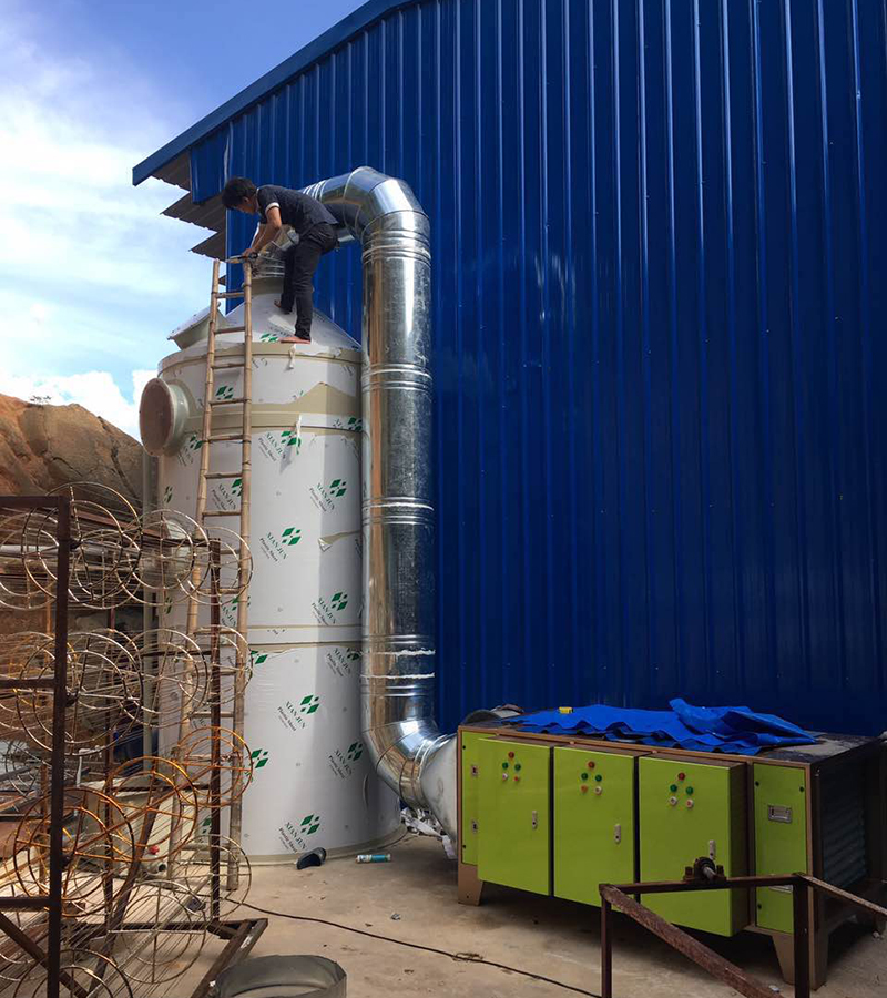 東莞市光輝裝飾(shì)材料有限公司是一家從事裝飾(shì)材料、家具、家用電器、金屬製品的生產製造類企(qǐ)業,該企業在噴(pēn)漆過程中,伴隨(suí)著含有VOC,苯,二甲苯,液態(tài)油漆霧化物等成(chéng)分的廢氣產生,這些廢氣如不經處理直接排放,勢必會對周(zhōu)圍環境造(zào)成汙染,對員工工作造成危害,影響周圍居民(mín)的正常生活(huó)。為有效保護(hù)環境,保障公眾健康,該廠於2017年提出治理想法(fǎ),並交付於91九色蝌蚪環保。為此,為此我公司在(zài)對項目進行現場踏勘的基(jī)礎上,結合有關技(jì)術資料、法律法規、技術導則和(hé)政府文件,為其選擇噴淋塔+UV光(guāng)解的處理工藝,並(bìng)設計了一套集生產,安裝,調試,驗收的一條龍服務政策,有效的節省了甲方的時間。