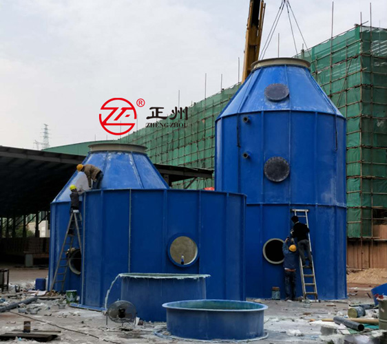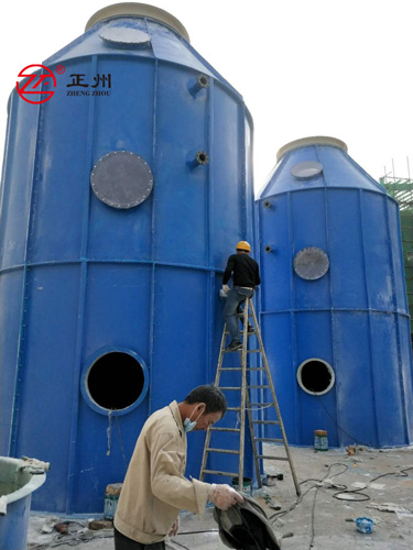 除塵脫硫塔一般(bān)用於鍋(guō)爐尾氣的處理,可很好的處理含塵含硫的廢氣。因處理的(de)風量一般較(jiào)大,對脫(tuō)硫塔(tǎ)的強度有要(yào)求,故其材質一般(bān)采用玻璃鋼製成。91九色蝌蚪環保製作的玻璃(lí)鋼脫硫塔具有製作(zuò)精細,設計(jì)合理,排氣煙霧小的特點。