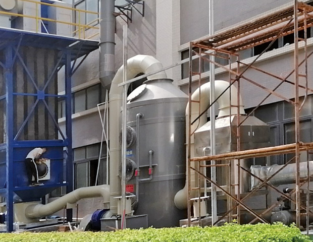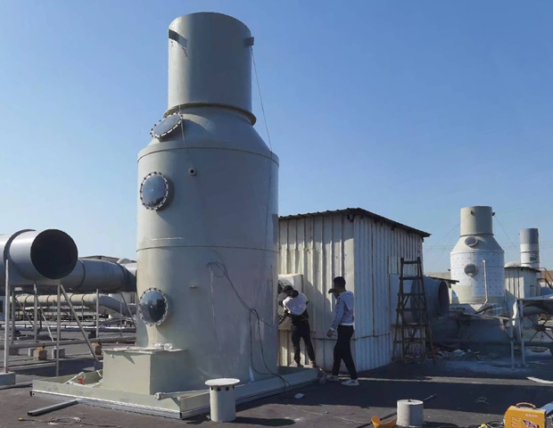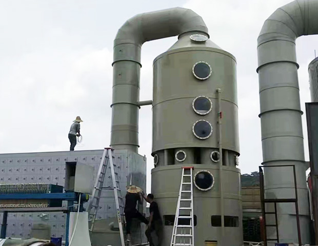 (1)廢氣經集氣罩收集後的廢氣由風管引入噴淋塔,去除廢氣中黏(nián)性的顆粒物,再通過除霧器降低水汽(qì)後進入下道工序。