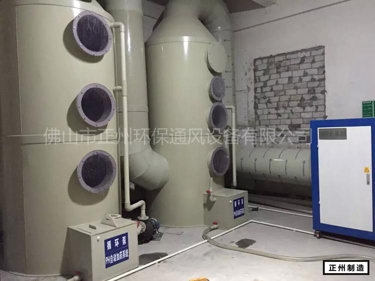 采用液(yè)體吸收法處理(lǐ)酸霧廢氣,液體吸收一般有水洗法和堿(jiǎn)液中和法兩種。重要(yào)的是淨化設備的選擇,能夠有效(xiào)地去除氯化氫氣(HCl)、氟化氫氣(HF)、氨(NH3)、硫酸霧(H2SO4)等水溶性物質。堿液吸收劑有10%的Na2CO3、4%~6%的(de)NaOH和NH3等水溶液。采(cǎi)用的淨化處(chù)理設(shè)備有洗滌塔、填充塔(tǎ)、旋轉(zhuǎn)塔等。主要淨化酸霧廢氣,充分接觸氣體、液體,酸、堿中和,提高淨化效果(guǒ)。