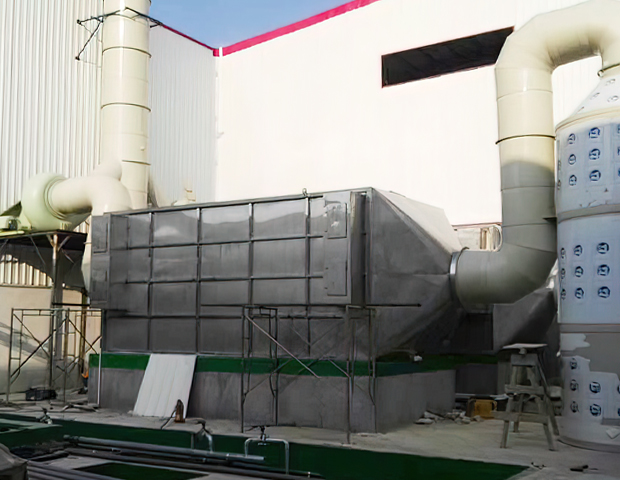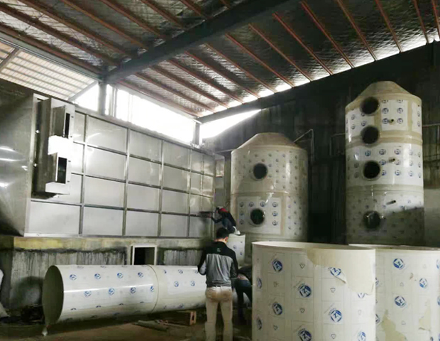 (1) 廢氣經集氣罩收集後的廢氣由風管引入噴淋塔,去除廢氣中(zhōng)黏性的顆粒物,再通過除(chú)霧器降低水汽後進入下道工序。